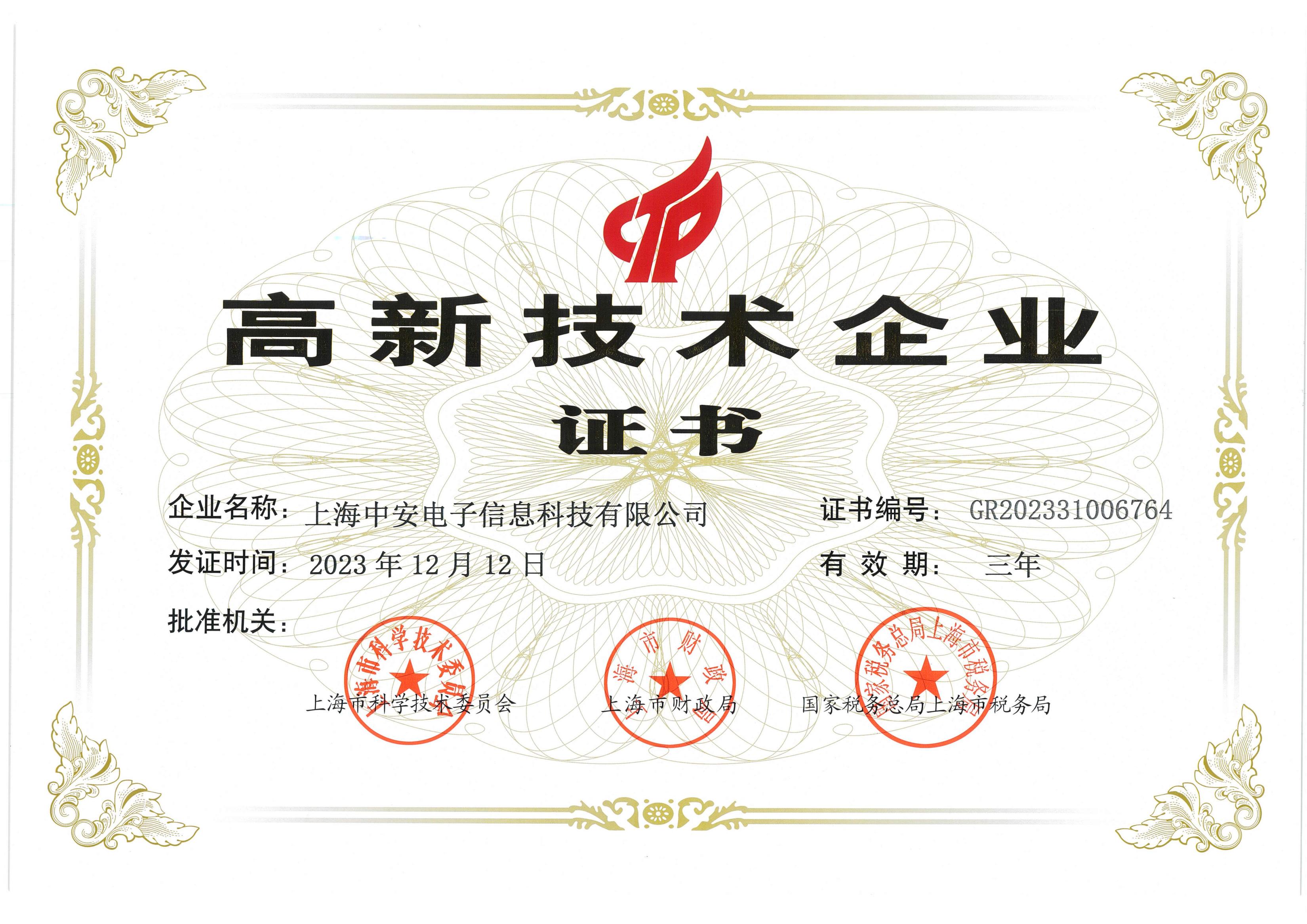 中安科技再獲“高新技術(shù)企業(yè)”認(rèn)定?。?024/03/04)